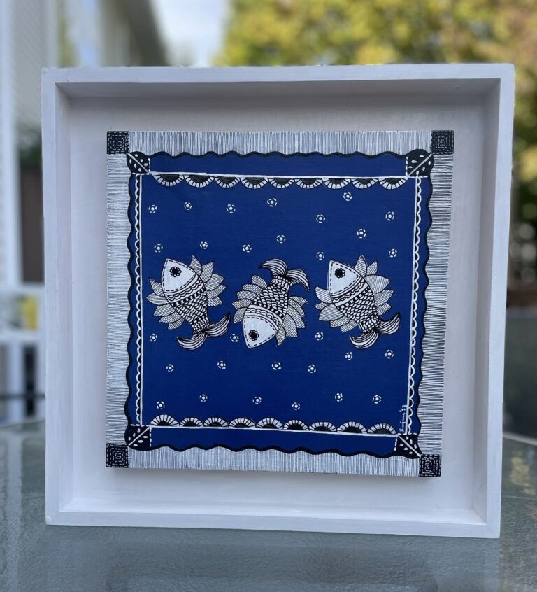 Madhubani art, also known as Mithila painting, is one of India’s oldest and most cherished art traditions, originating from the Mithila region of Bihar and Nepal. Traditionally, it was painted on freshly plastered mud walls and floors during festivals, weddings, and special ceremonies, serving as both decoration and blessing. Today, Madhubani extends its charm to handmade paper, canvas, and textiles, making it accessible to a global audience.