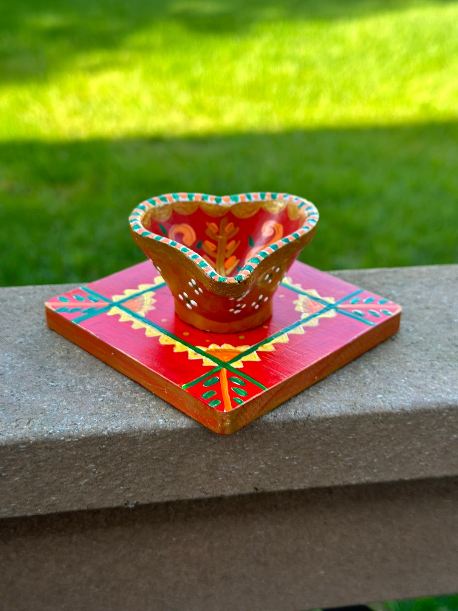 Each set includes a hand‑painted terracotta diya and a 4×4 inch wooden coaster, beautifully packed in a ready‑to‑gift box.