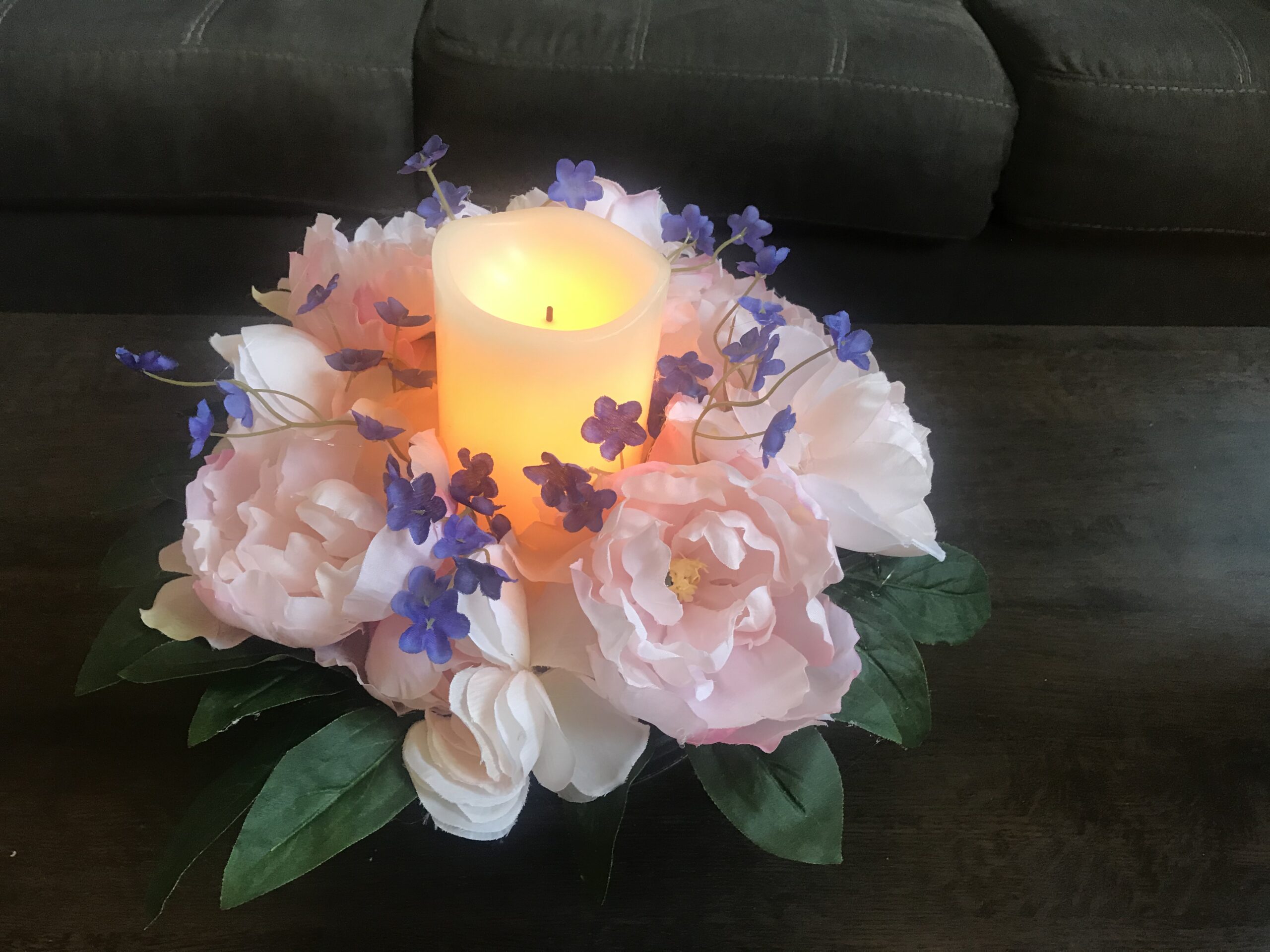 Product Specifications: Faux flowers, artificial butterflies , unfinished wood crate . Candles are not included in the price, but may be added to the order.
